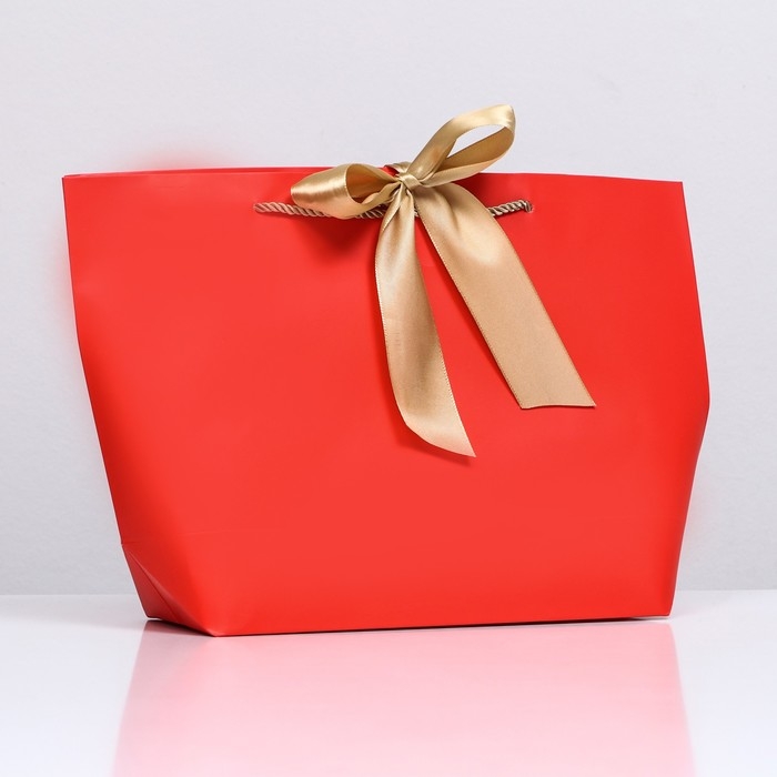 Пакет подарочный с лентой 26 х 25 х 11 см "Красный"