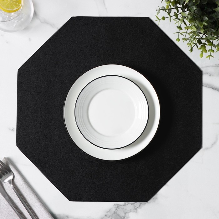 Салфетка сервировочная на стол «Тэм», d=38 см, цвет чёрный, восьмиугольник