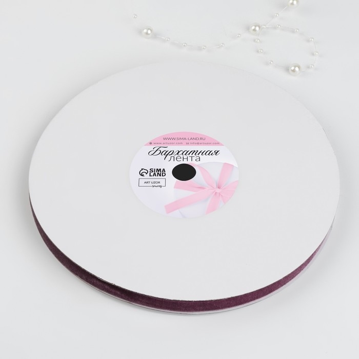 Лента бархатная, 10 мм, 18 ± 1 м, цвет ежевичный №199