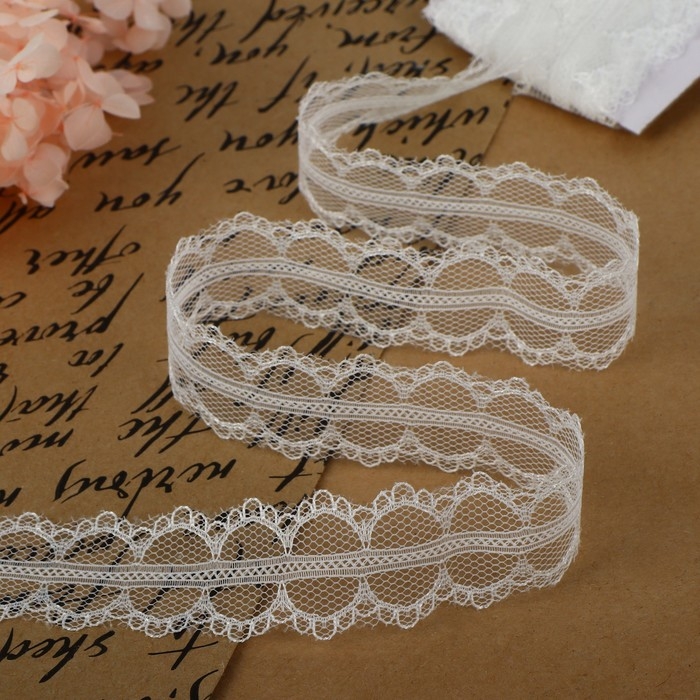 Кружево гипюровое, 15 мм × 14 ± 1 м, цвет белый
