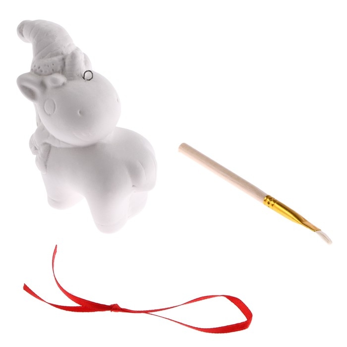 Новый год! Ёлочное украшение под раскраску «Единорог в колпачке» с подвесом, кисть