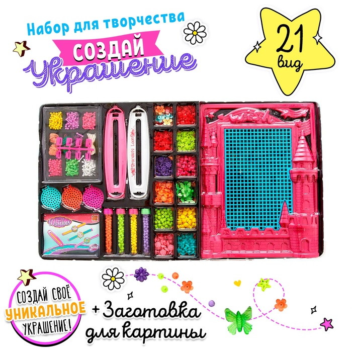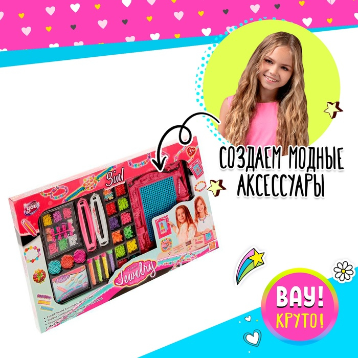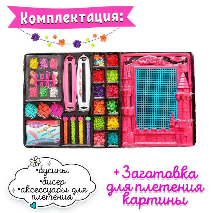 Воображайте и экспериментируйте! Разноцветный бисер и бусины создадут небывалый простор для творчества, а брошюра подскажет оригинальные идеи модных аксессуаров. Дочурка сплетёт уникальные браслеты, ожерелья и бусы. Теперь у любого наряда будет свой аксессуар. Украшения позволят маленькой принцессе чувствовать себя неотразимо, они подарят девочке отличное настроение и сделают каждый день похожим на праздник!