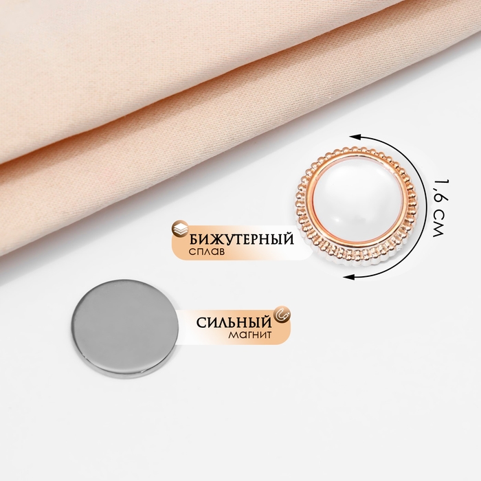 Магнит для платка «Перламутр» в оправе, цвет белый в золоте