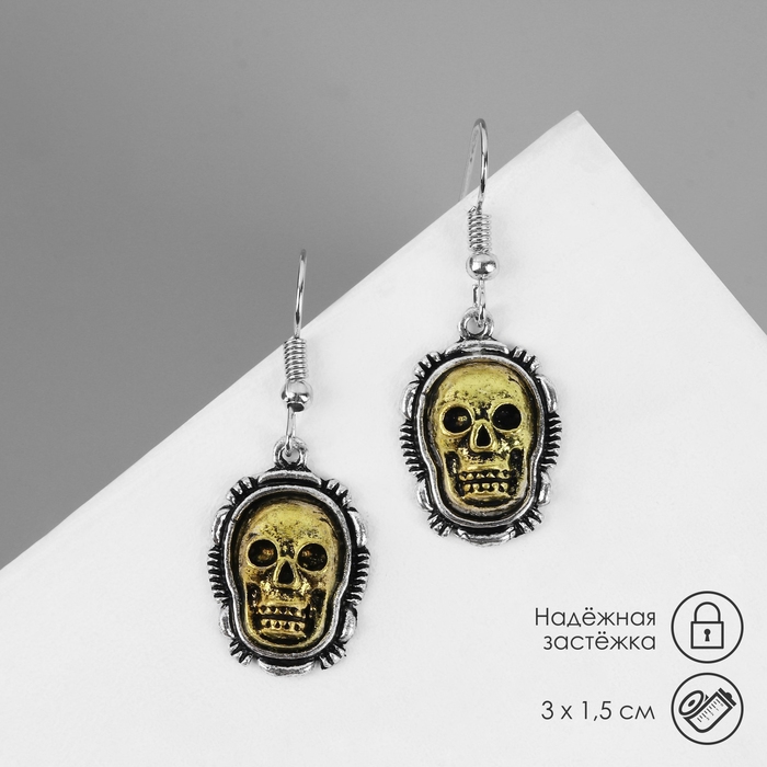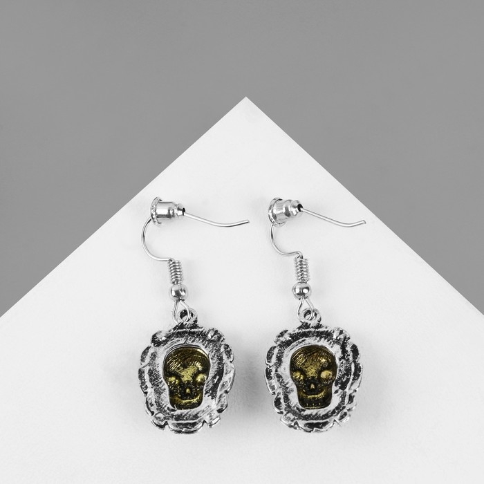 Серьги «Черепа», цвет золотистый в чернёном серебре
