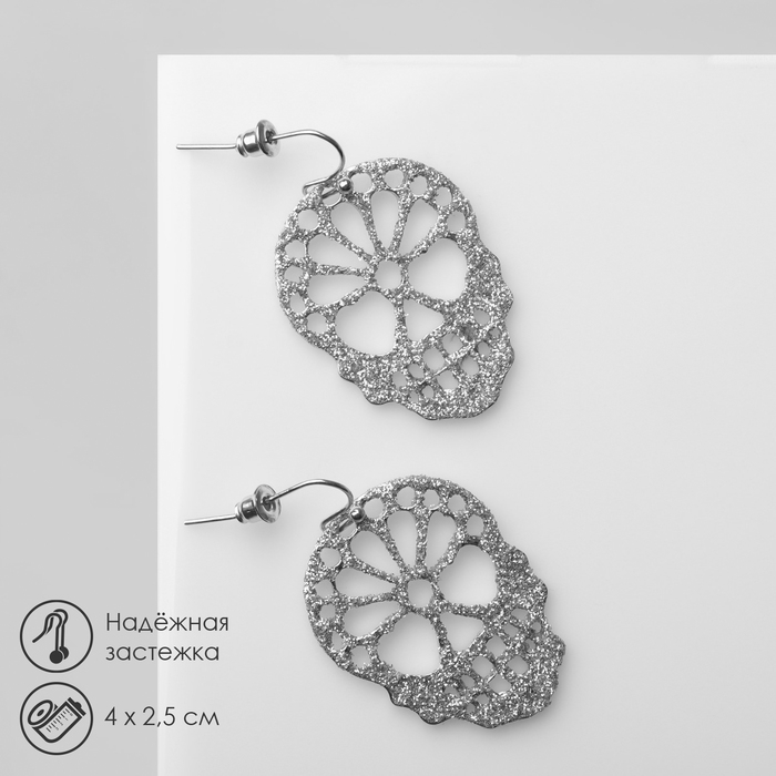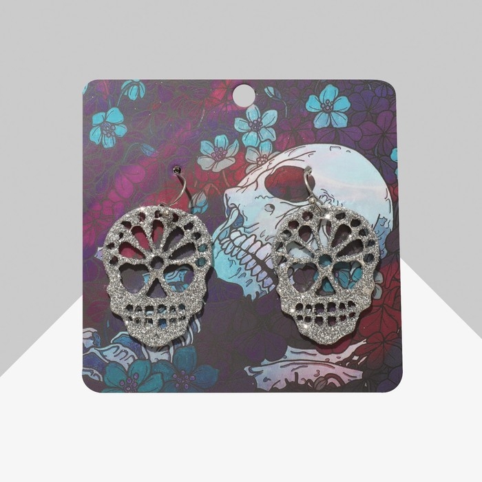 Серьги «Черепа» блестящие, цвет серебро