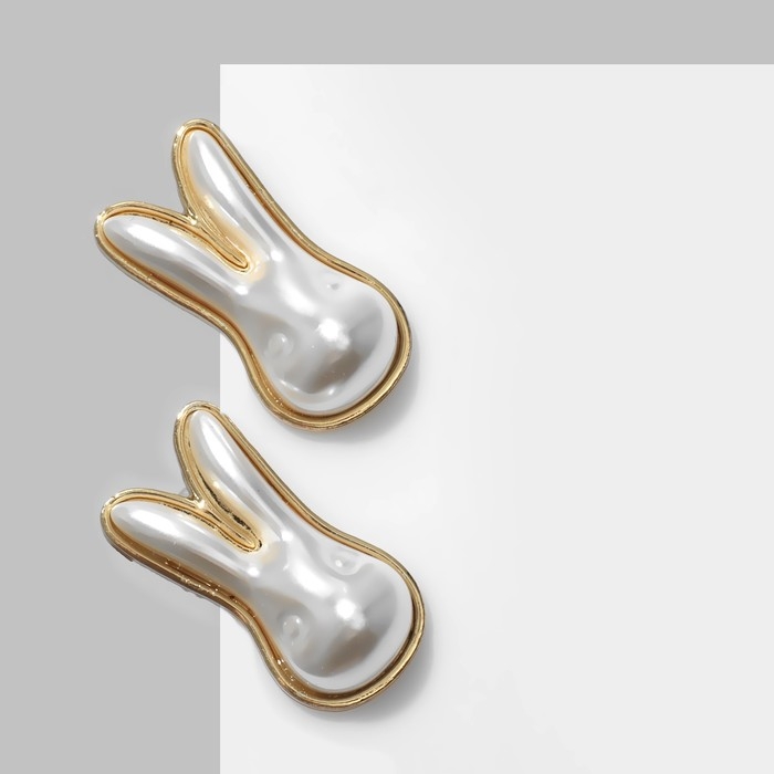 Серьги с жемчугом «Заяц» ушастый, цвет белый в золоте