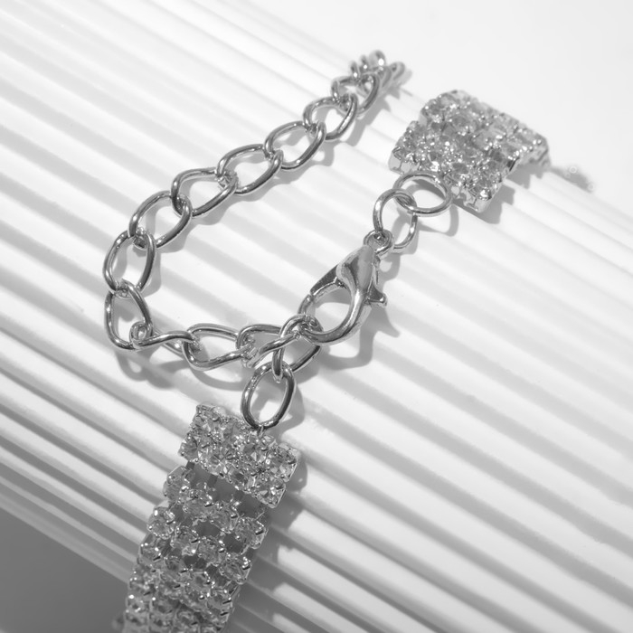 Браслет со стразами «Брайт» квадрат, цвет белый в серебре, 18 размер