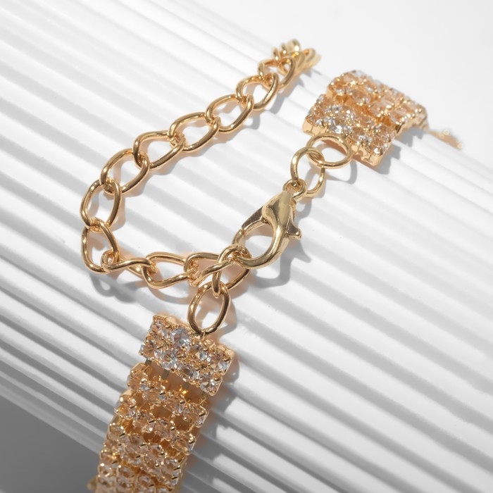 Браслет со стразами «Брайт» квадрат, цвет белый в золоте, 18 размер