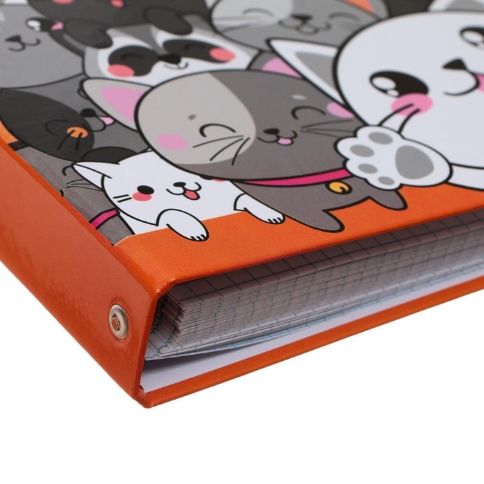 Тетрадь на кольцах A5 80 листов в клетку Calligrata "Коты", обложка 7БЦ, без вырубки под кольца, блок офсет