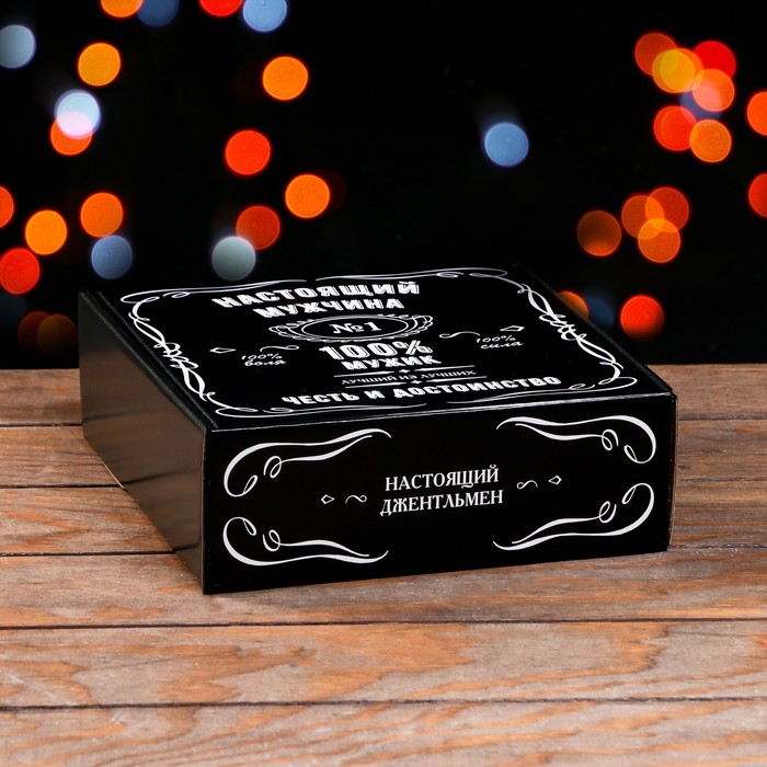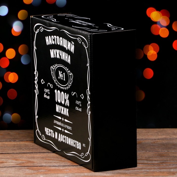 Подарочная коробка "100% Мужик", чёрный, 23 х 23 х 8 см