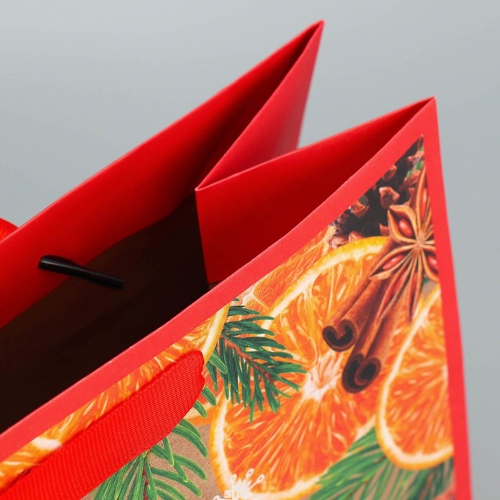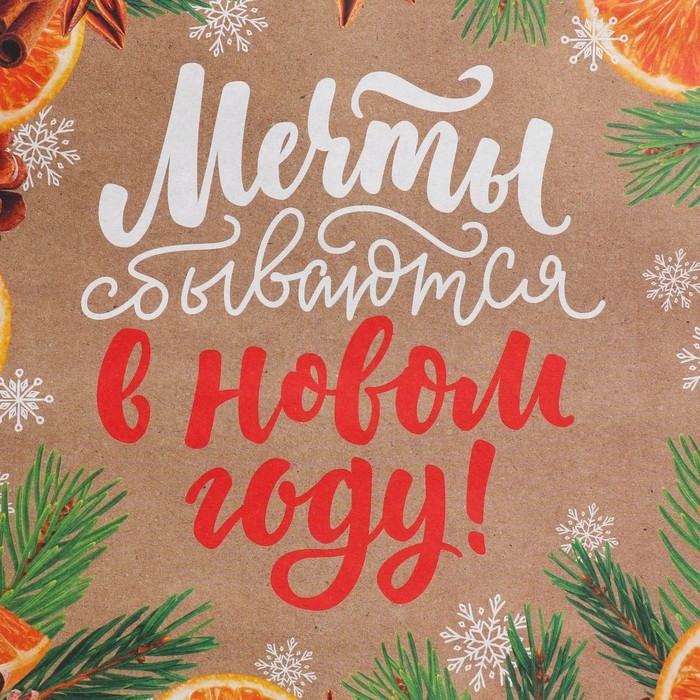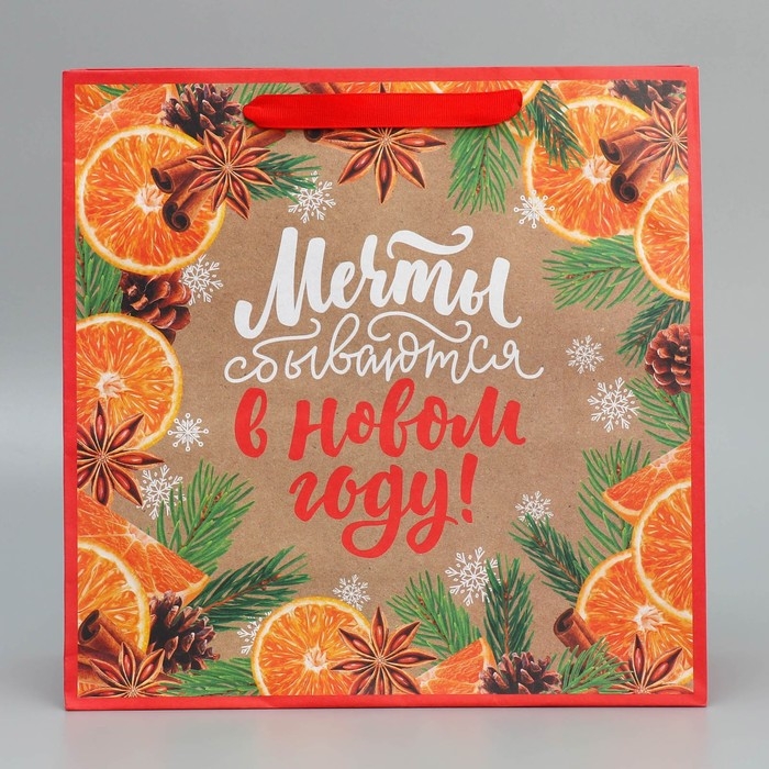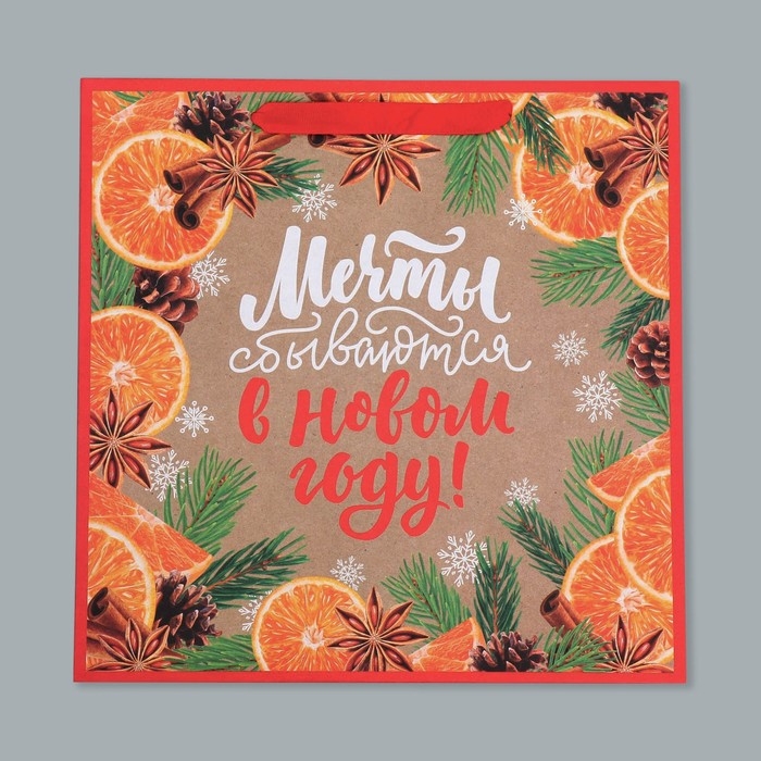 Пакет подарочный новогодний крафтовый квадратный «Мечты», 30 х 30 х 12 см, Новый год