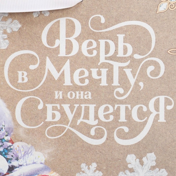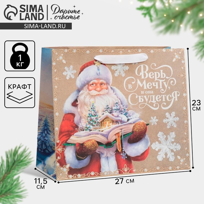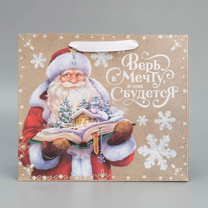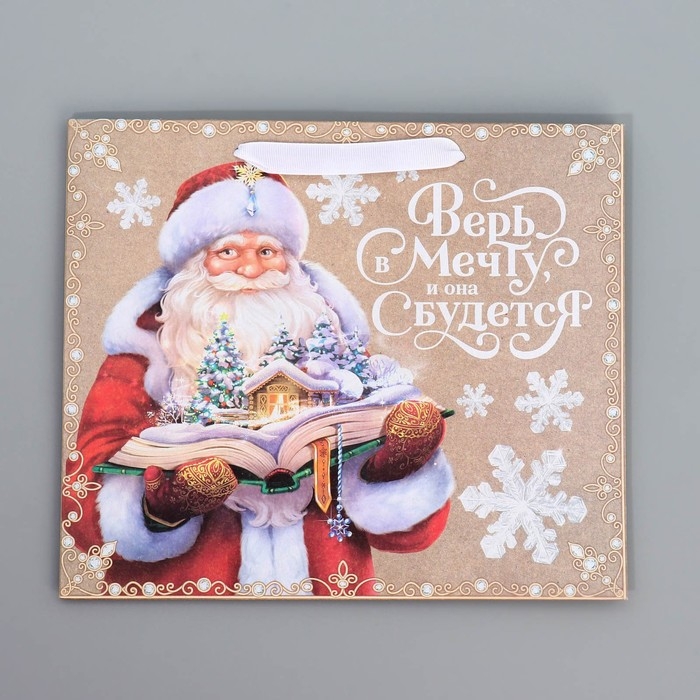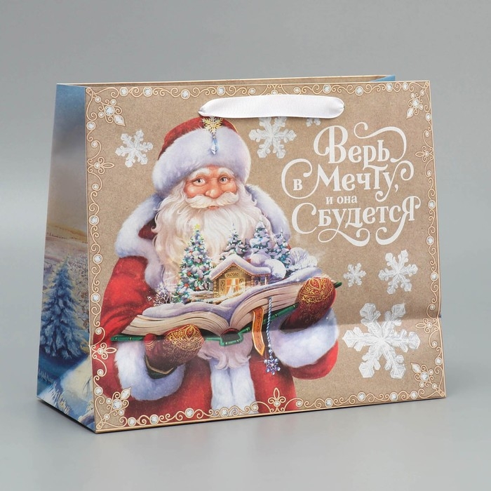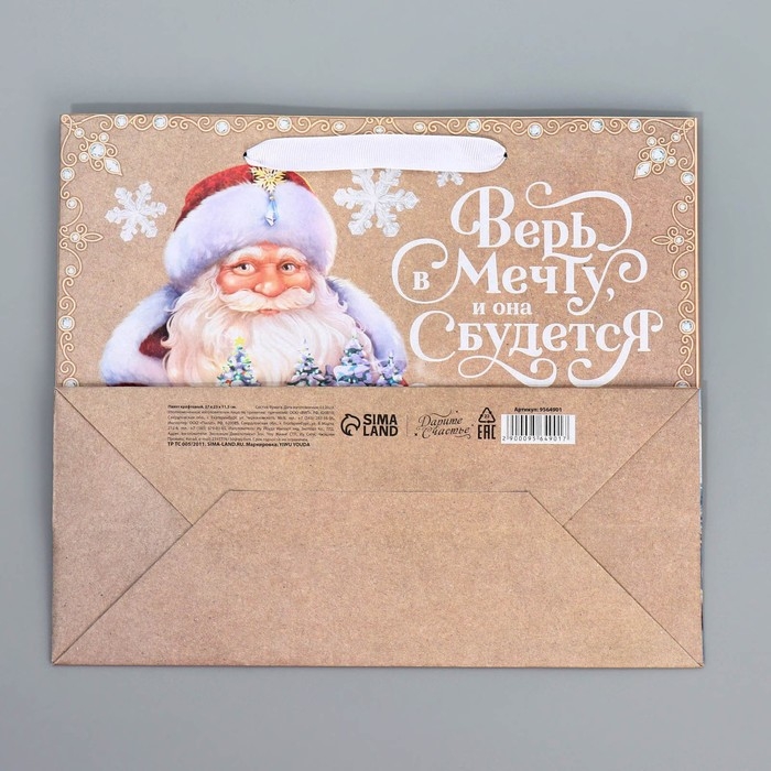 Пакет подарочный новогодний крафтовый горизонтальный «Дедушка Мороз», ML 27 х 23 х 11.5 см, Новый год