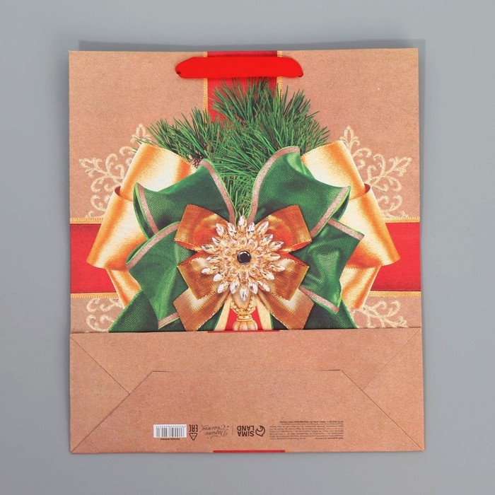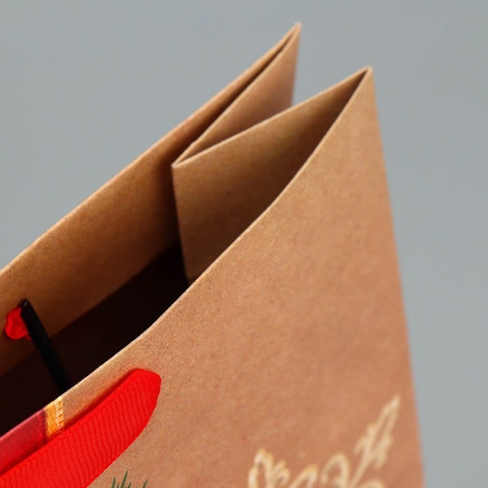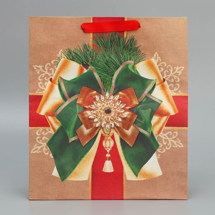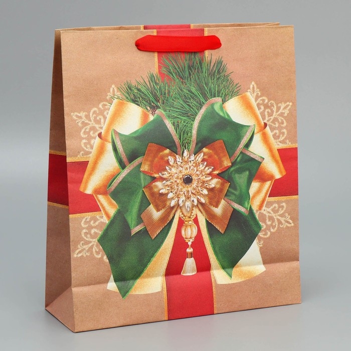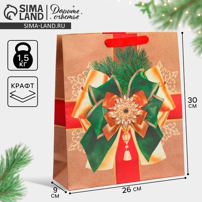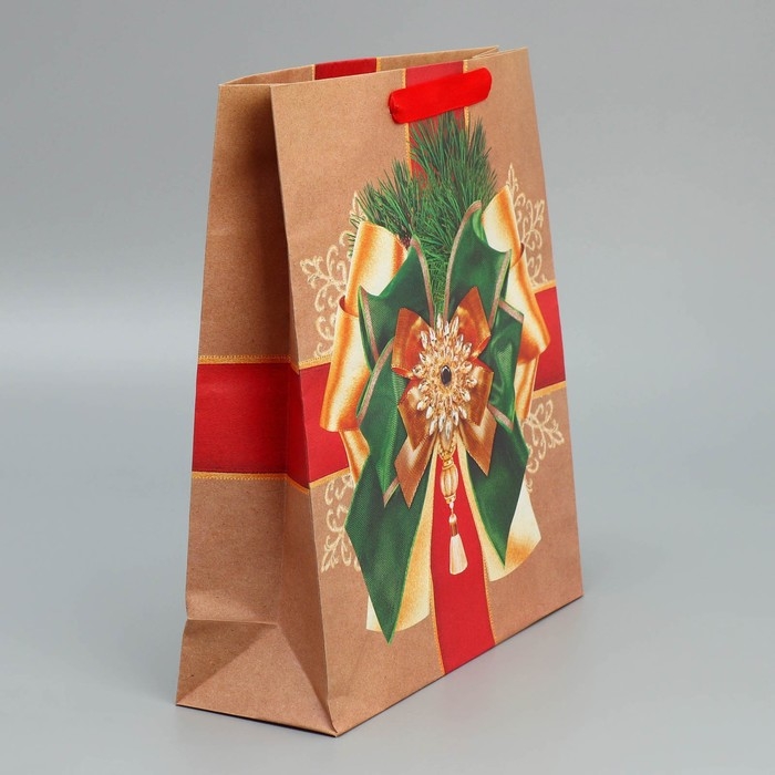 Пакет подарочный новогодний крафтовый вертикальный «Новогодний подарок», M 26 х 30 х 9 см, Новый год