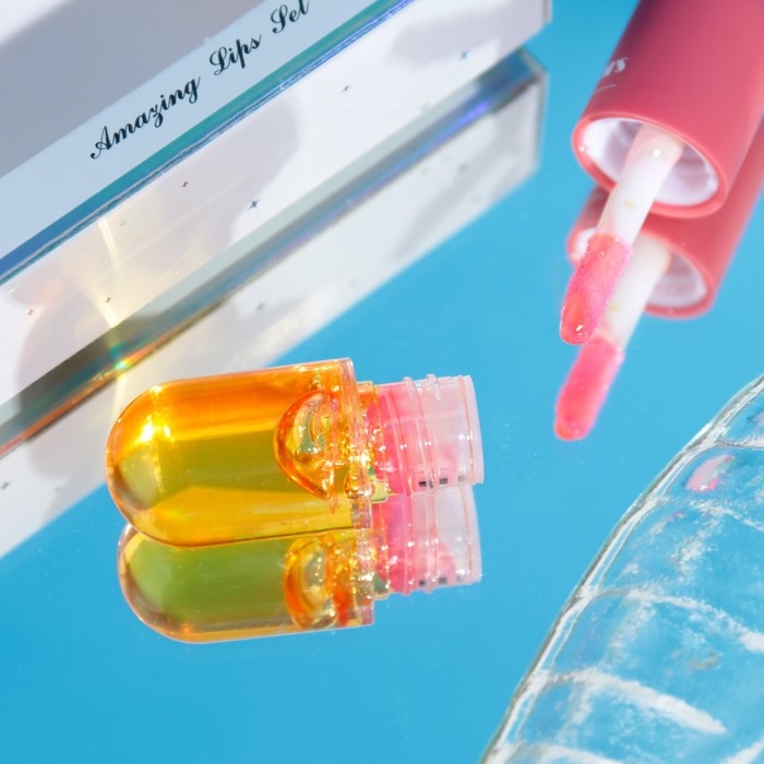 Премиальный набор для увеличения и ухода за губами состоит из двух блесков для губ и одного масла: