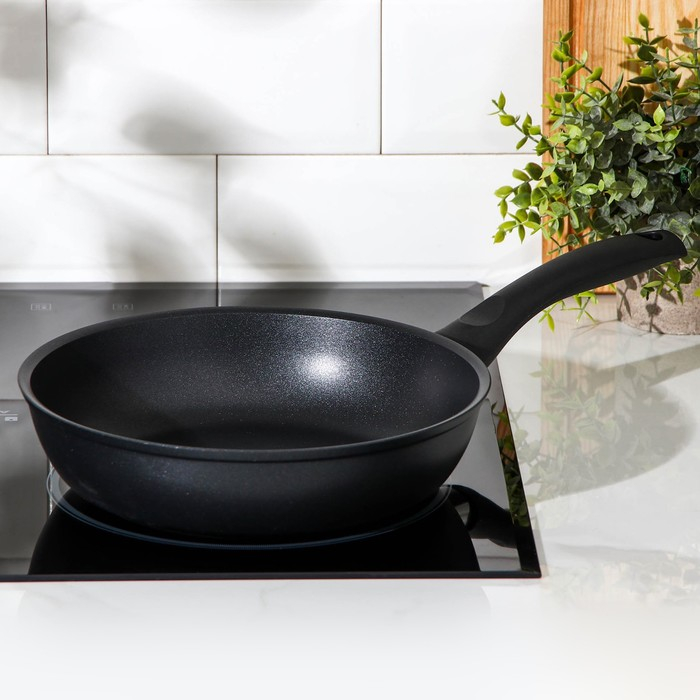 Сковорода «Традиция», d=24 см, пластиковая ручка, антипригарное покрытие, цвет чёрный