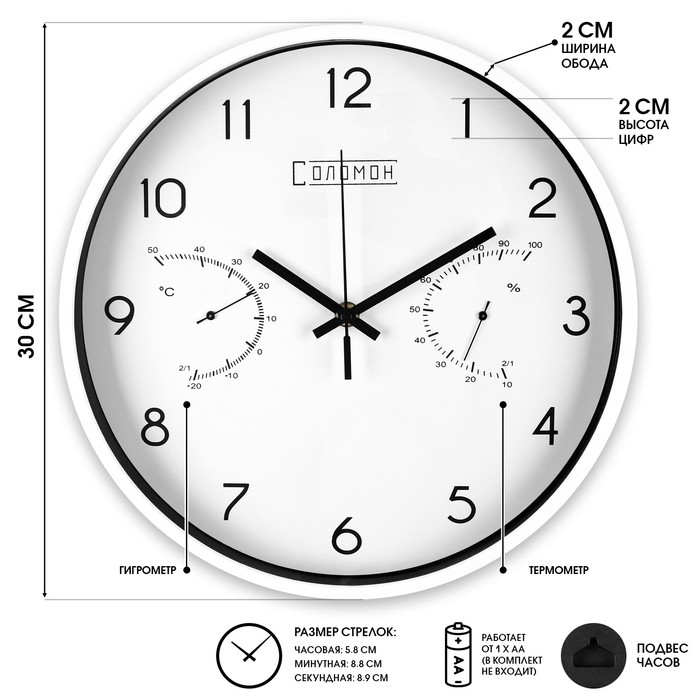 Часы настенные интерьерные "Соломон", бесшумные, d-30 см, термометр, гигрометр
