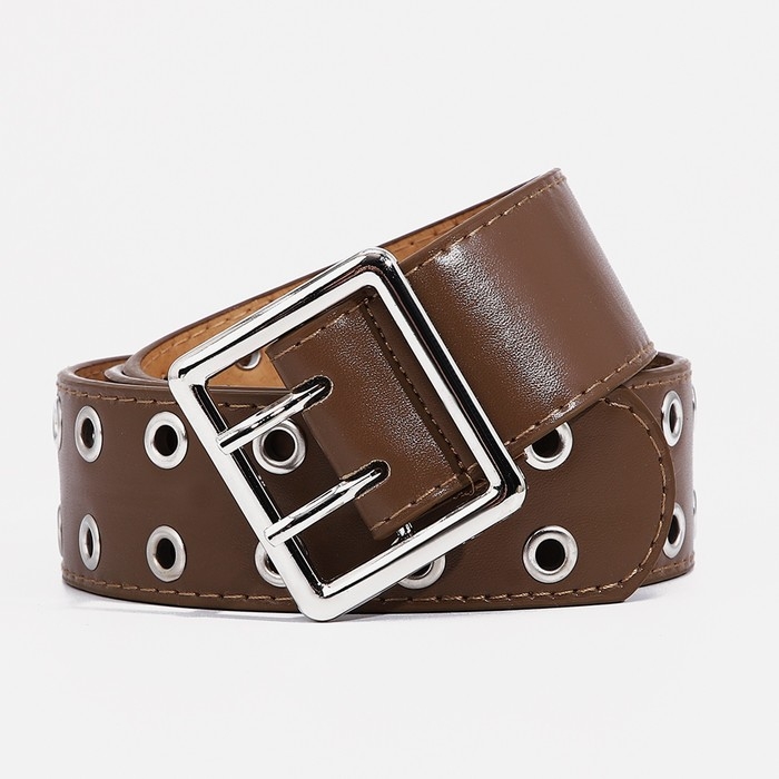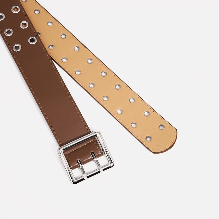 Ремень женский, ширина 4 см, люверсы, пряжка металл, цвет коричневый