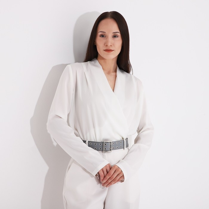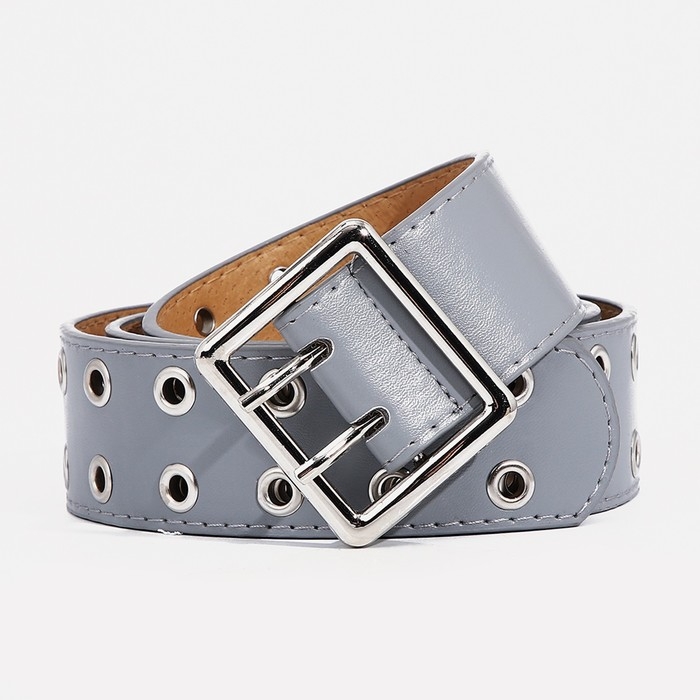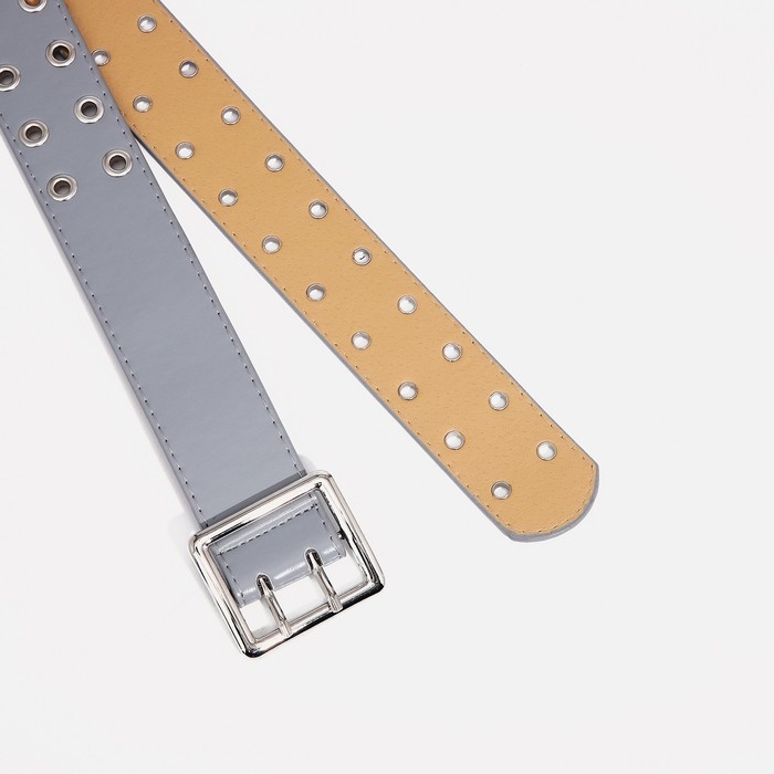 Ремень женский, ширина 4 см, люверсы, пряжка металл, цвет светло-серый