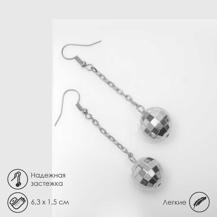 Серьги висячие «Диско-шар», цвет серебро, 6,3см