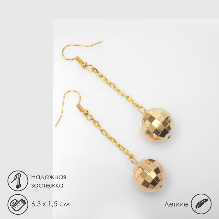 Серьги висячие «Диско-шар», цвет золото, 6,3 см