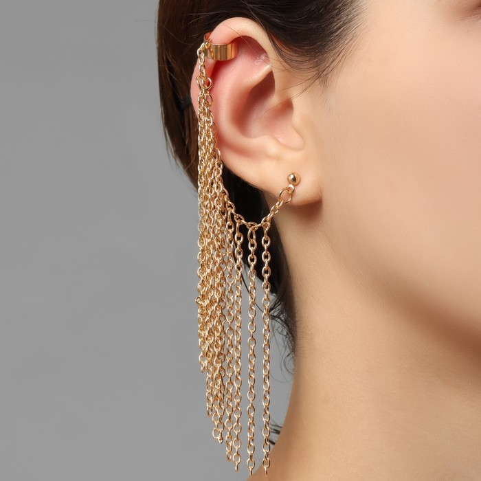 Серьга «Кафф» лунная дорожка, цвет белый в золоте