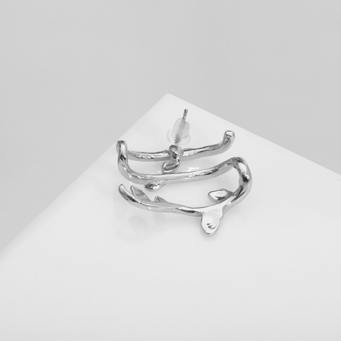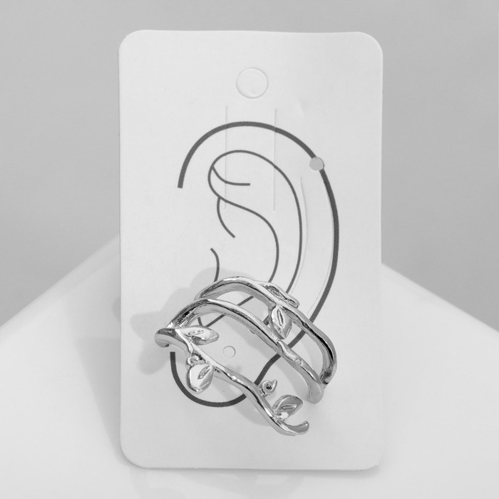 Серьга «Кафф» ветка с листьями, цвет серебро