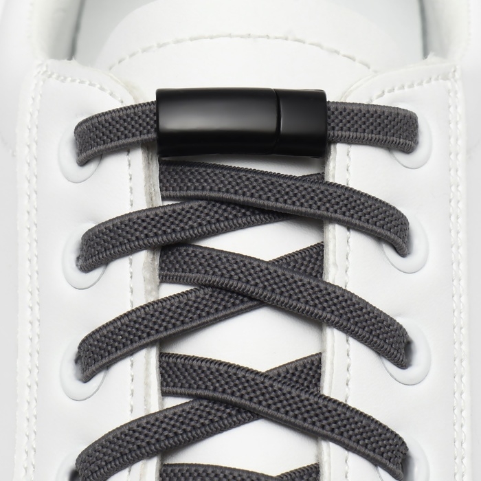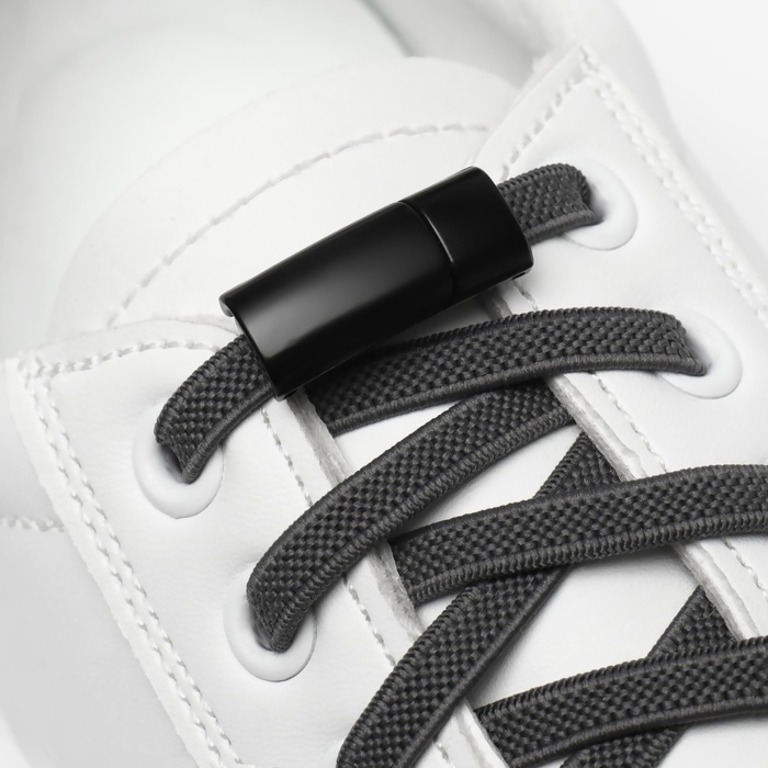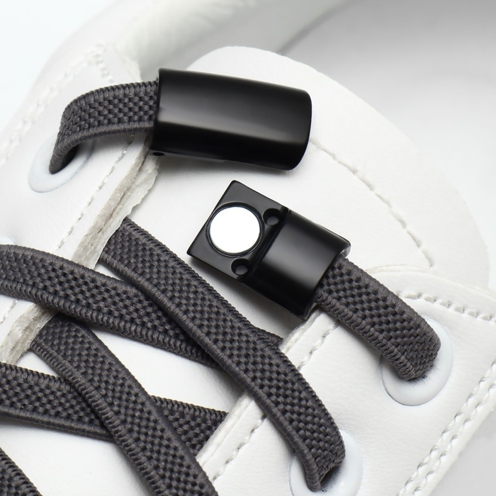 Шнурки для обуви, на магнитах, пара, с плоским сечением и фиксатором, 100 см, цвет чёрный