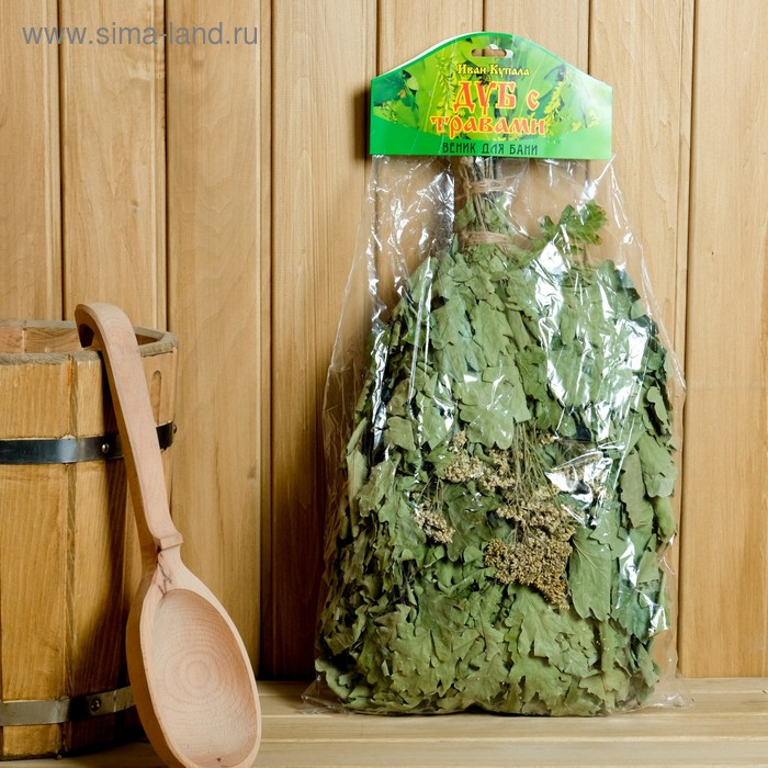 Веник для бани дубовый с тысячелистником, в индивидуальной упаковке