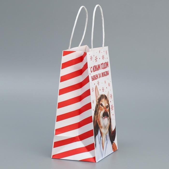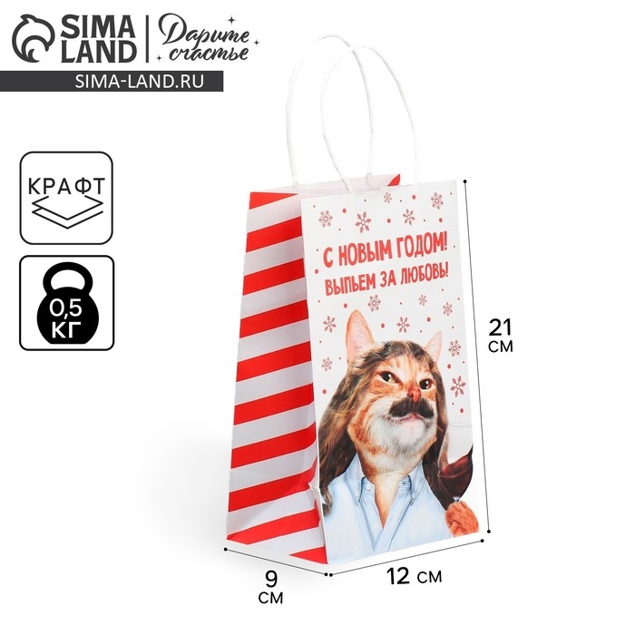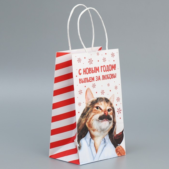 Пакет подарочный новогодний крафтовый «За любовь», 12 х 21 х 9 см, Новый год