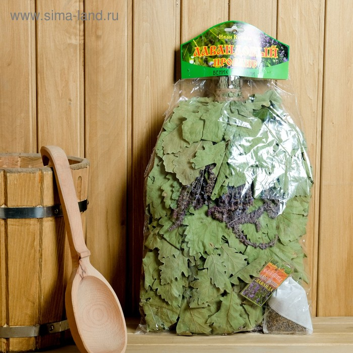 Веник для бани дубовый "Лавандовый прованс" с лавандой, в индивидуальной упаковке
