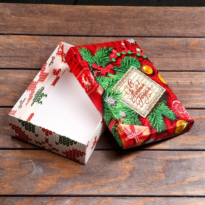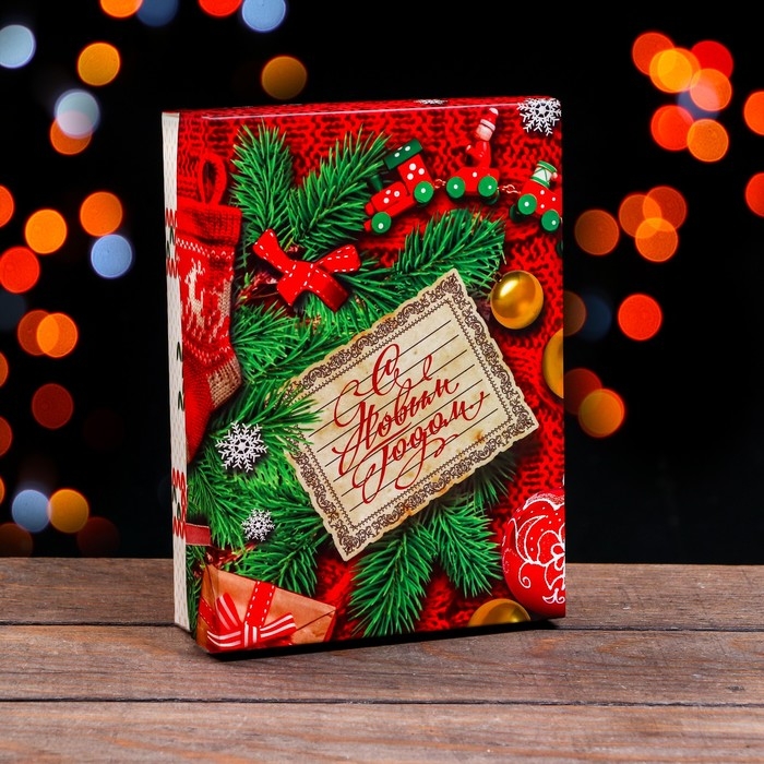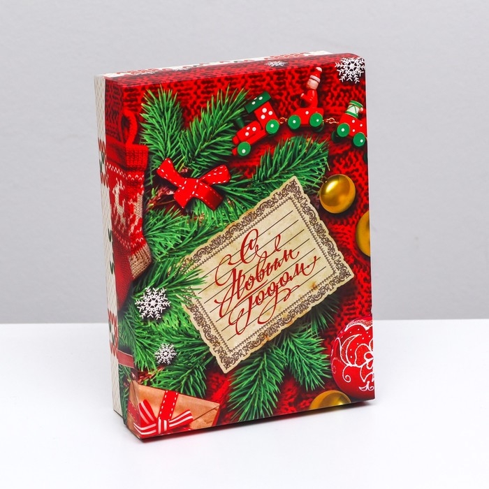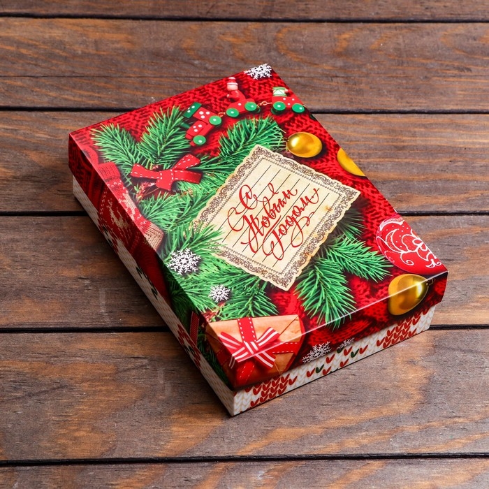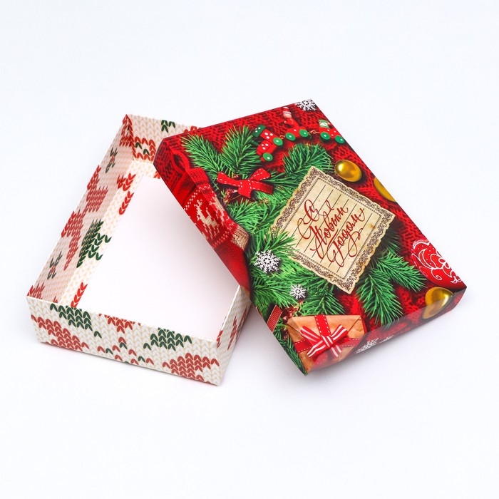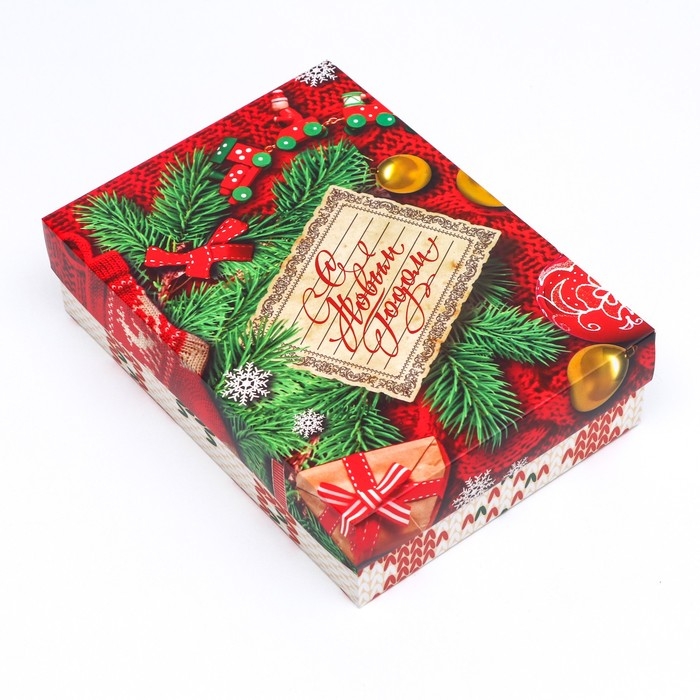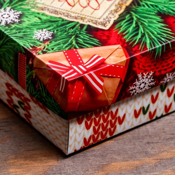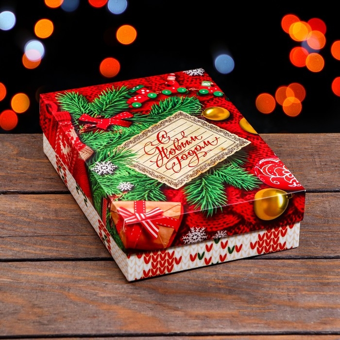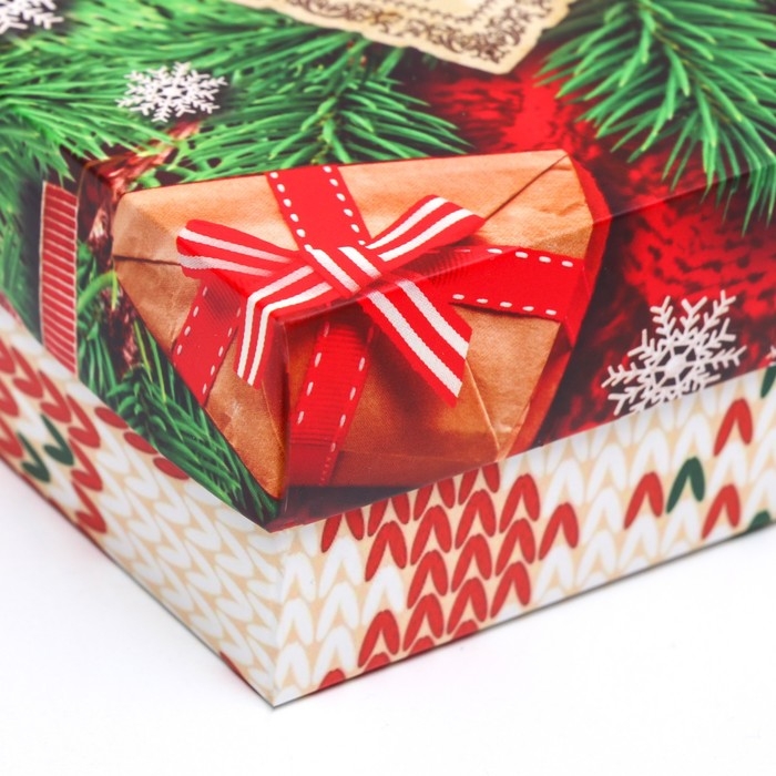 Новый год. Коробка подарочная новогодняя складная, крышка-дно без окна, "Вязанка", 21 х 15 х 5,7 см