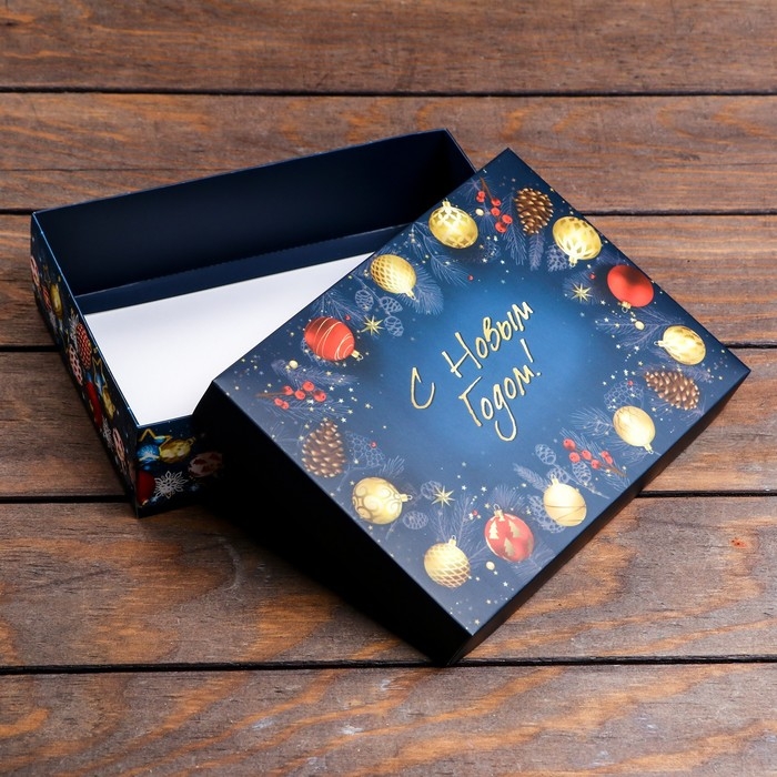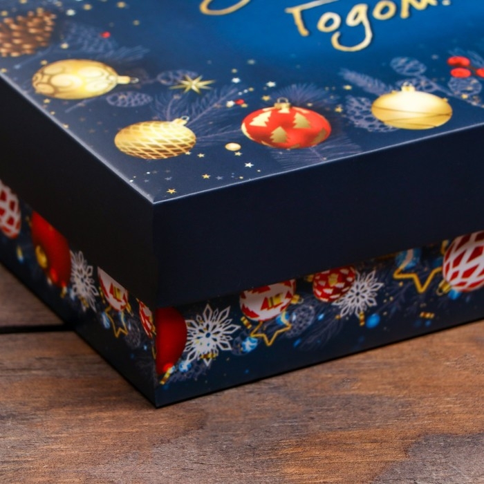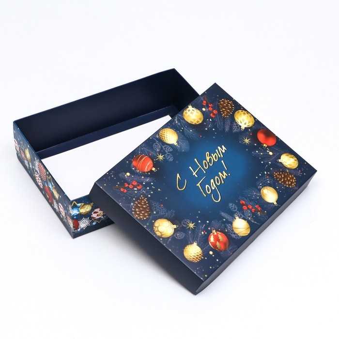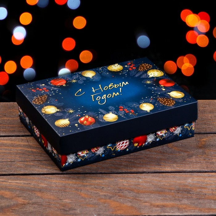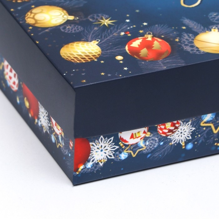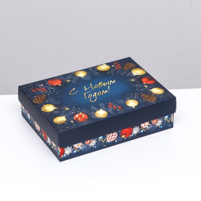 Новый год. Коробка подарочная новогодняя складная, крышка-дно, "Елочные игрушки", 21 х 15 х 5,7 см