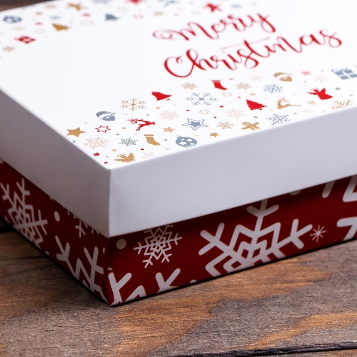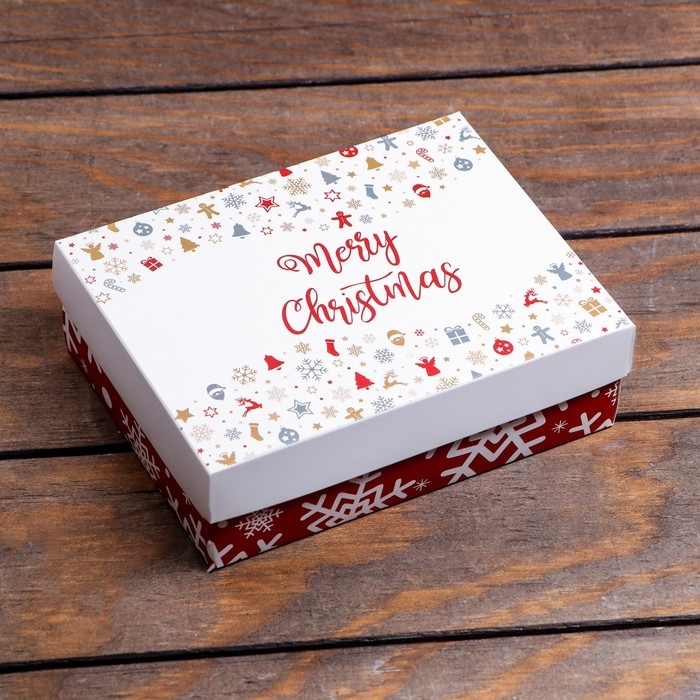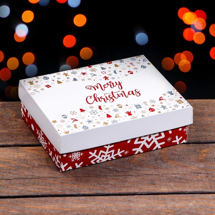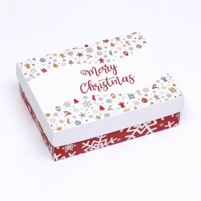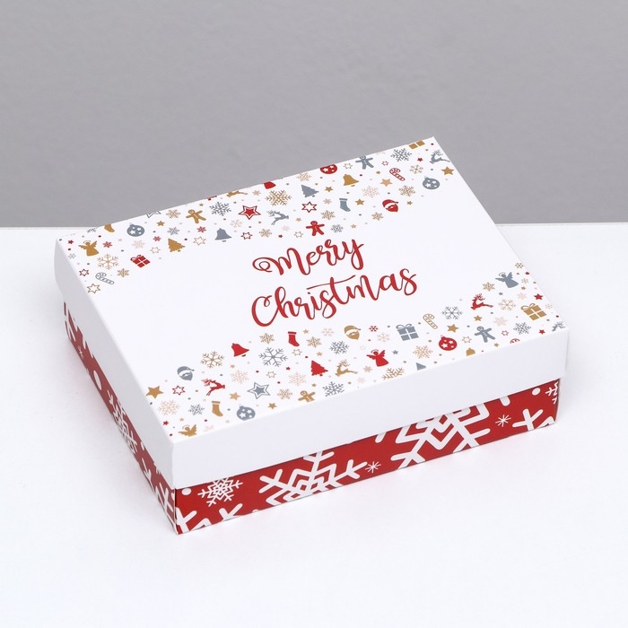 Новый год. Коробка подарочная новогодняя складная, "Снежинки", 16,5 х 12,5 х 5,2 см