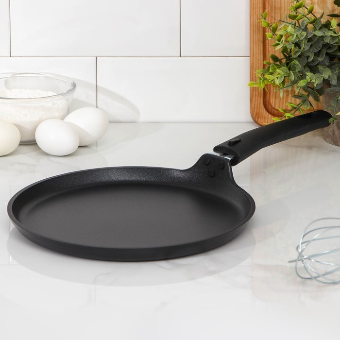 Сковорода блинная «Традиция», d=24 см, съёмная ручка, антипригарное покрытие, цвет чёрный