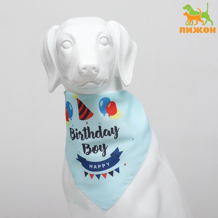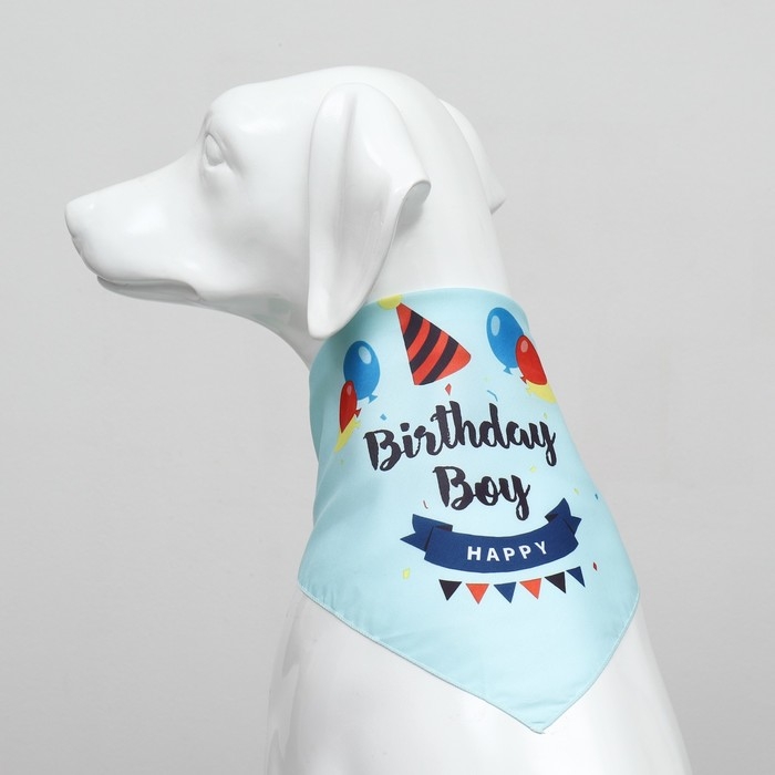 На платке нанесен яркий и красочный рисунок с надписью "С днём рождения", который придаст вашему питомцу неповторимый вид и сделает его настоящей звездой.