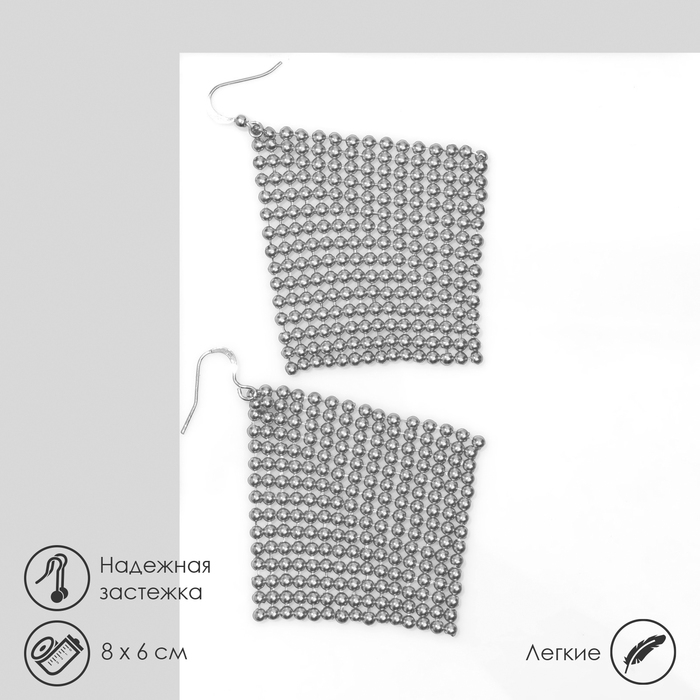 Серьги «Диско» кольчуга объемная, цвет серебро, 8 см