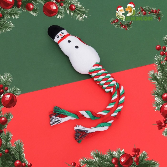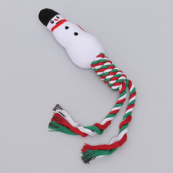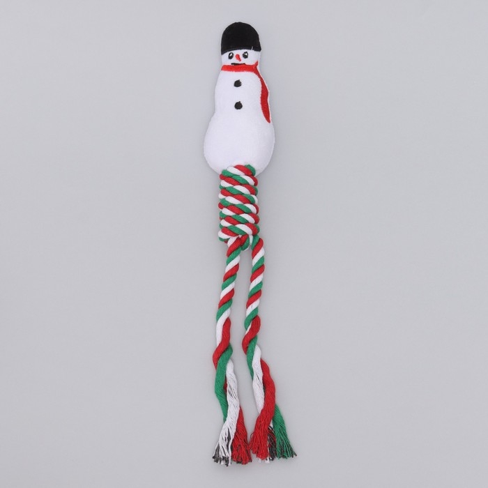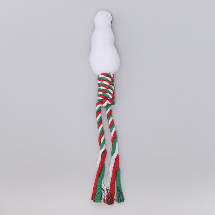Игрушка пищащая, мягкая для собак "Снеговик" с канатом, 32 см