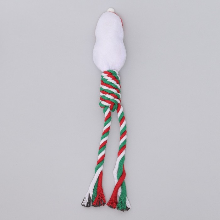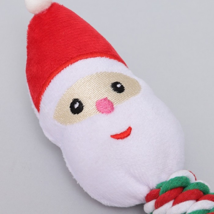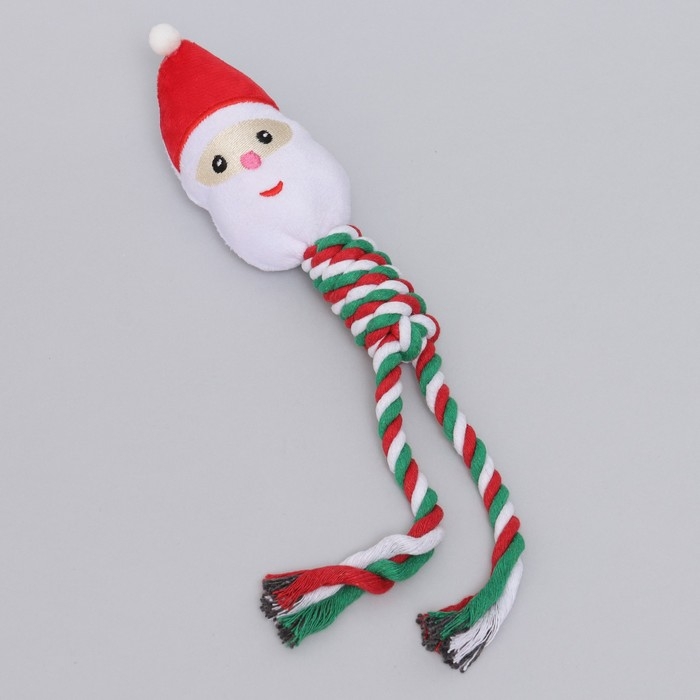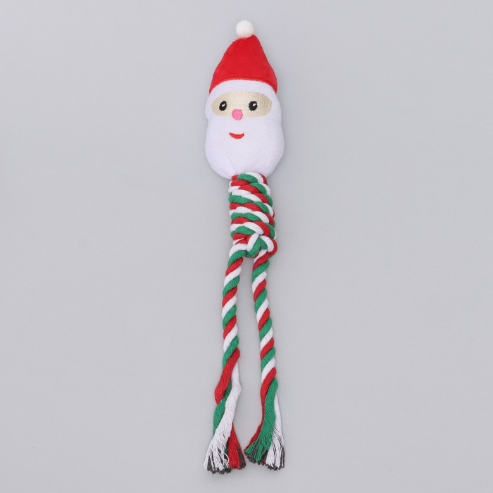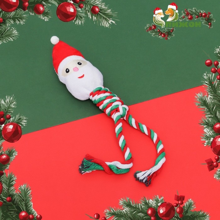 Игрушка пищащая, мягкая для собак "Дед мороз" с канатом, 32 см