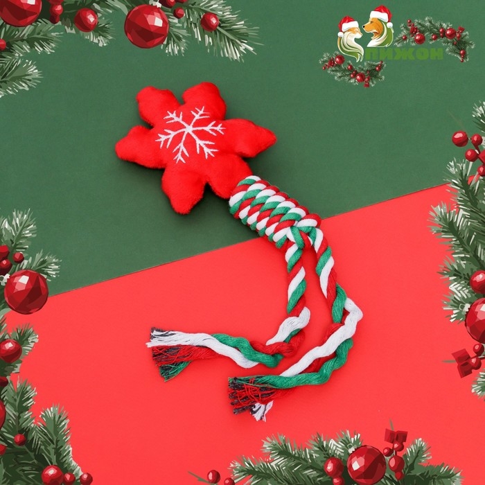 Игрушка пищащая, мягкая для собак "Снежинка" с канатом, 32 см