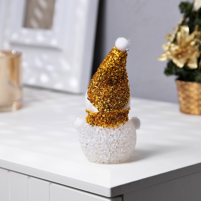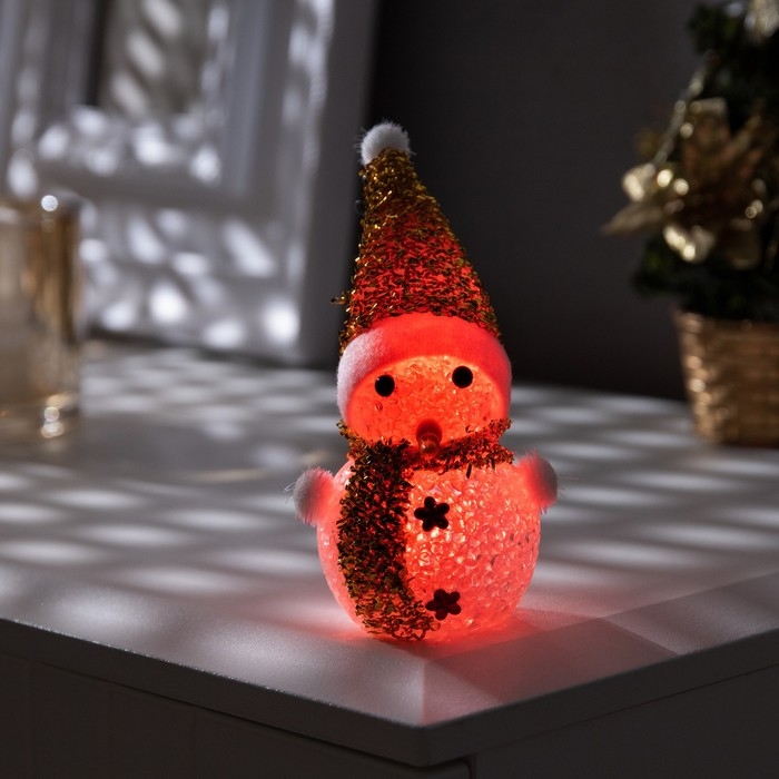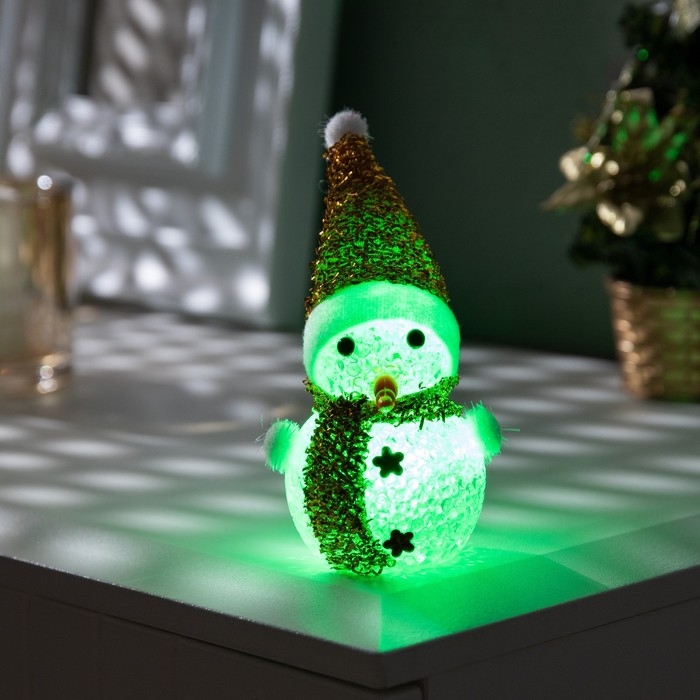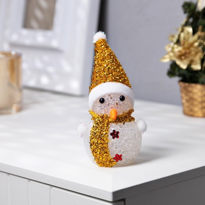 Ёлочная игрушка «Золотистый снеговичок» 8 см, батарейки AG13 (в комплекте), свечение мульти (RGB)