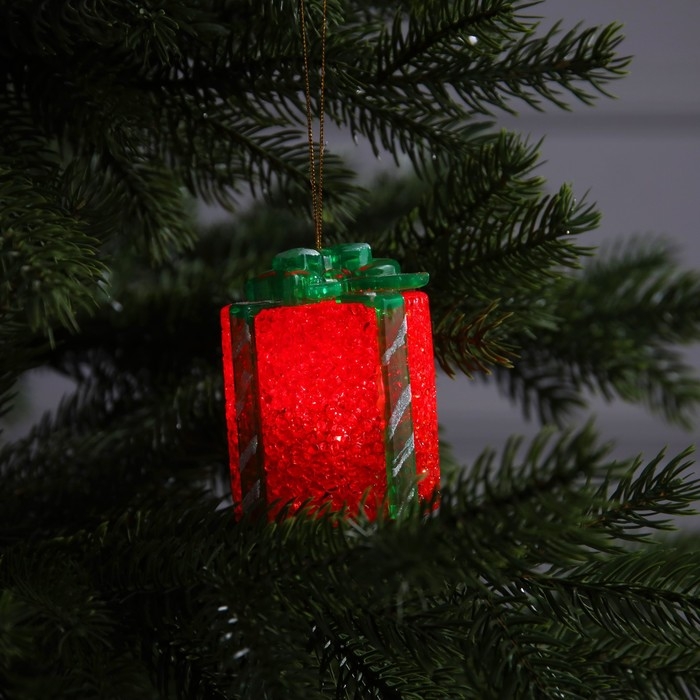Светодиодная фигура «Подарок красный» 7.5 см, пластик, батарейки AG13х3 (в комплекте), свечение мульти (RGB)