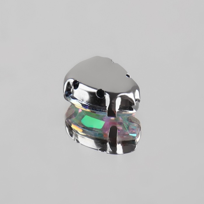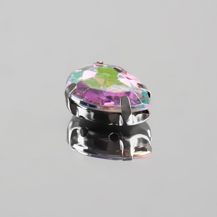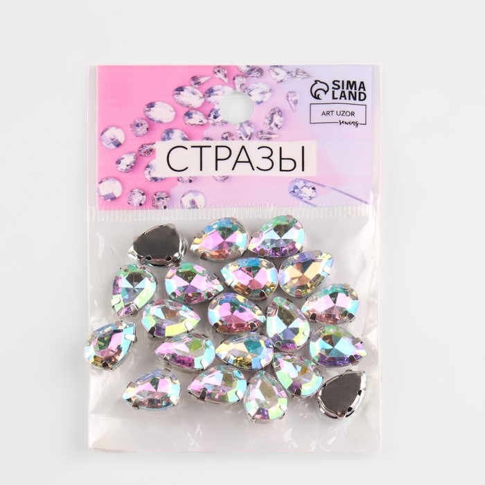 Стразы пришивные «Капля», в оправе, с голографией, 10 × 14 мм, 20 шт