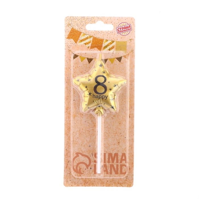 Свеча в торт на шпажке "Воздушный шарик.Звезда", цифра 8, 11х5 см, золотая