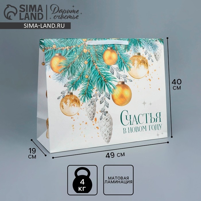 Пакет подарочный новогодний ламинированный «Счастья в Новом году», XL 49 х 40 х 19 см, Новый год