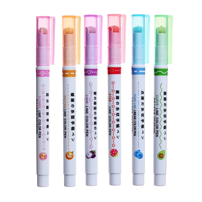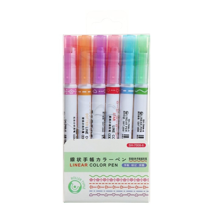 Набор маркеров-текстовыделителей 6 цветов, с печатями-рисунками