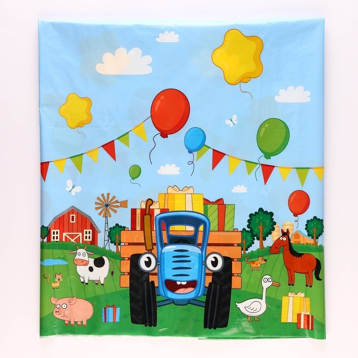 Скатерть одноразовая праздничная 120х180 см, 35 мкр, Синий трактор