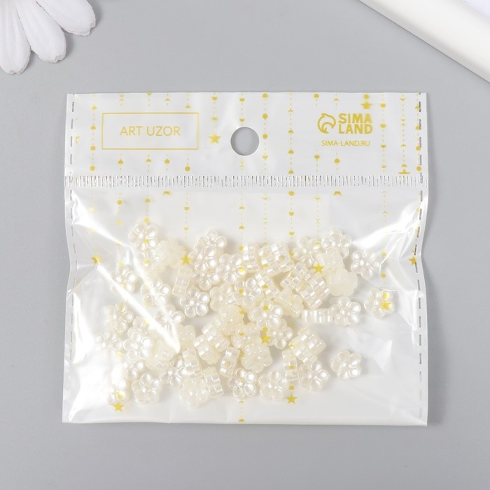 Бусины для творчества пластик "Жемчужные микро цветочки" набор 60 шт 0,5х0,9х0,9 см