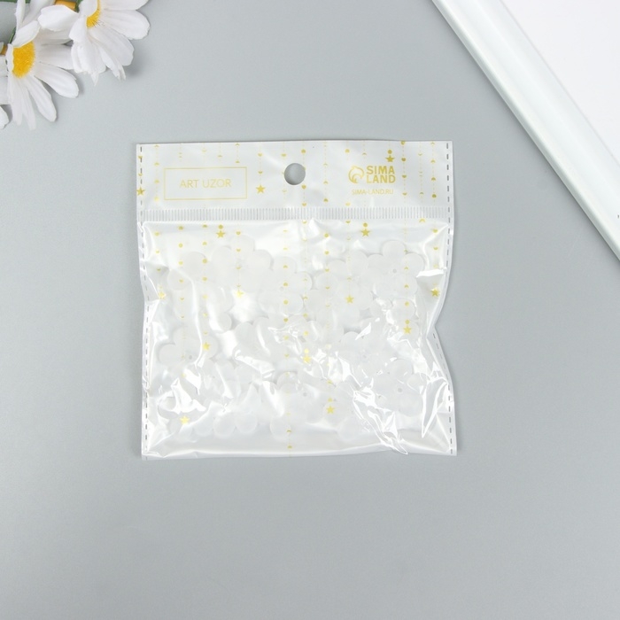 Бусины для творчества пластик "Цветочек белый матовый" набор 20 шт 2,2х2,2 см