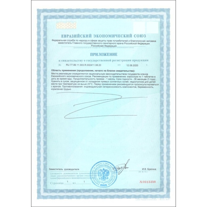 Взрослым по 1 таблетке в день во время еды. Продолжительность приема – 1 месяц.