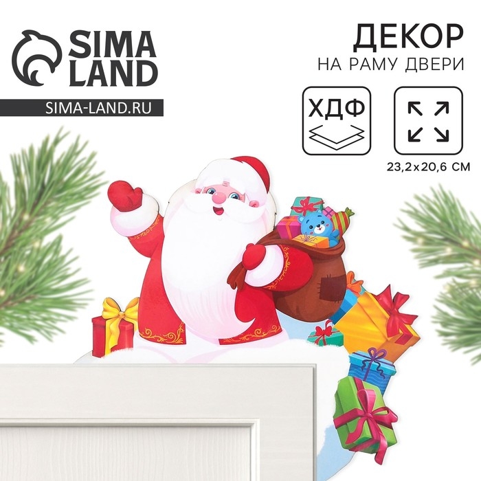 Декор на раму двери новогодний «Дед мороз», на Новый год, 23,2 х 20,6 см
